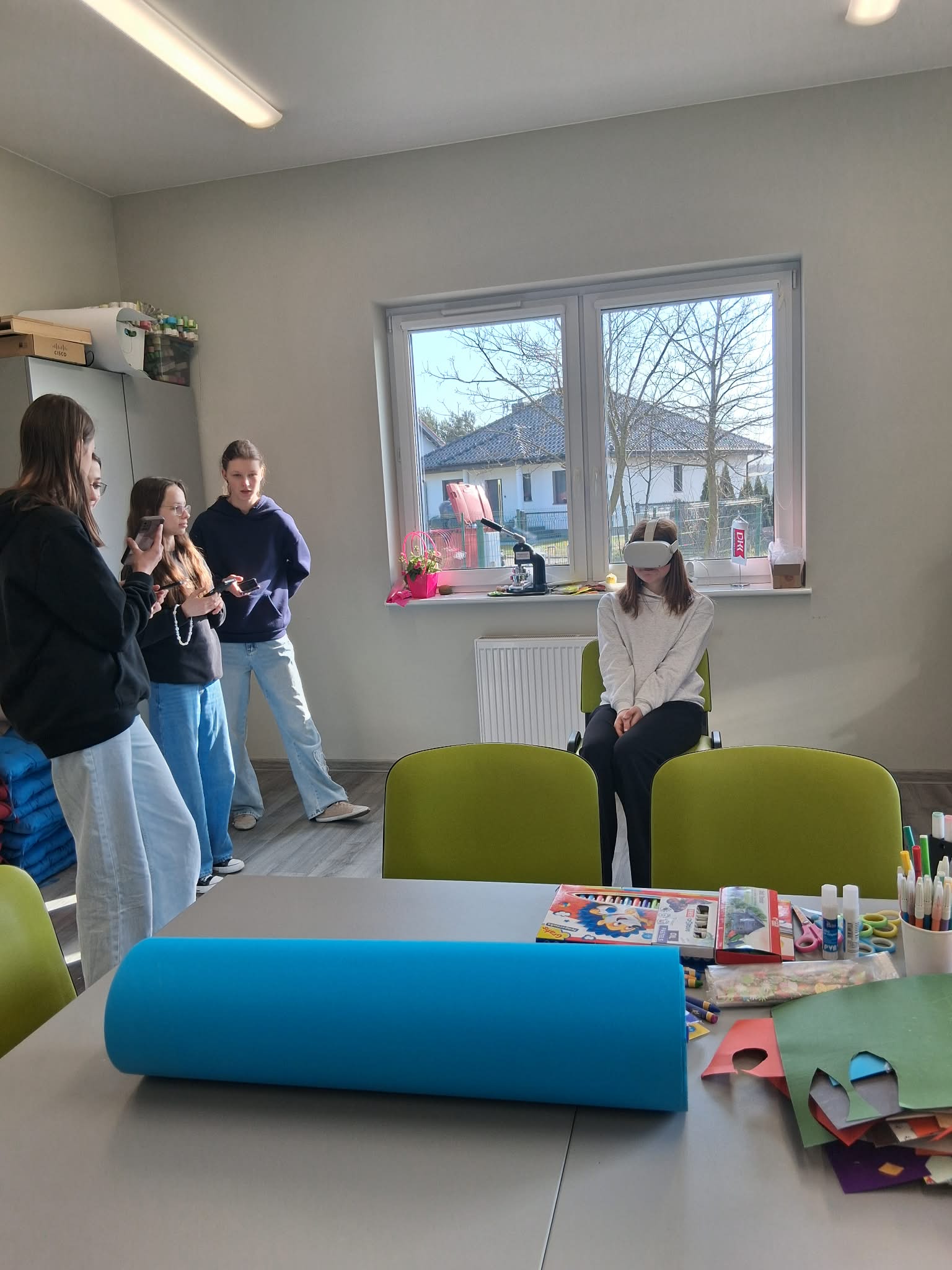 Podczas zajęć dziewczyny z klasy 7 miały okazję poznać tradycje wielkanocne z różnych zakątków świata, wykorzystując nowoczesne technologie – aplikacje mobilne oraz gogle VR. Na początku lekcji wprowadzono temat Wielkanocy w kontekście kulturowym, a następnie uczniowie, pracując nad wspólnym projektem, eksplorowały wybrane kraje za pomocą specjalnych aplikacji na telefonach. Dzięki goglom VR mogły „przenieść się” do różnych miejsc na świecie i zobaczyć, jak obchodzone są święta w innych kulturach – m.in. uczestniczyć w wirtualnych procesjach, zobaczyć tradycyjne potrawy czy dekoracje. Zajęcia miały charakter interaktywny i angażujący – uczniowie samodzielnie wyszukiwali informacje, analizowali je i dzielili się swoimi spostrzeżeniami.