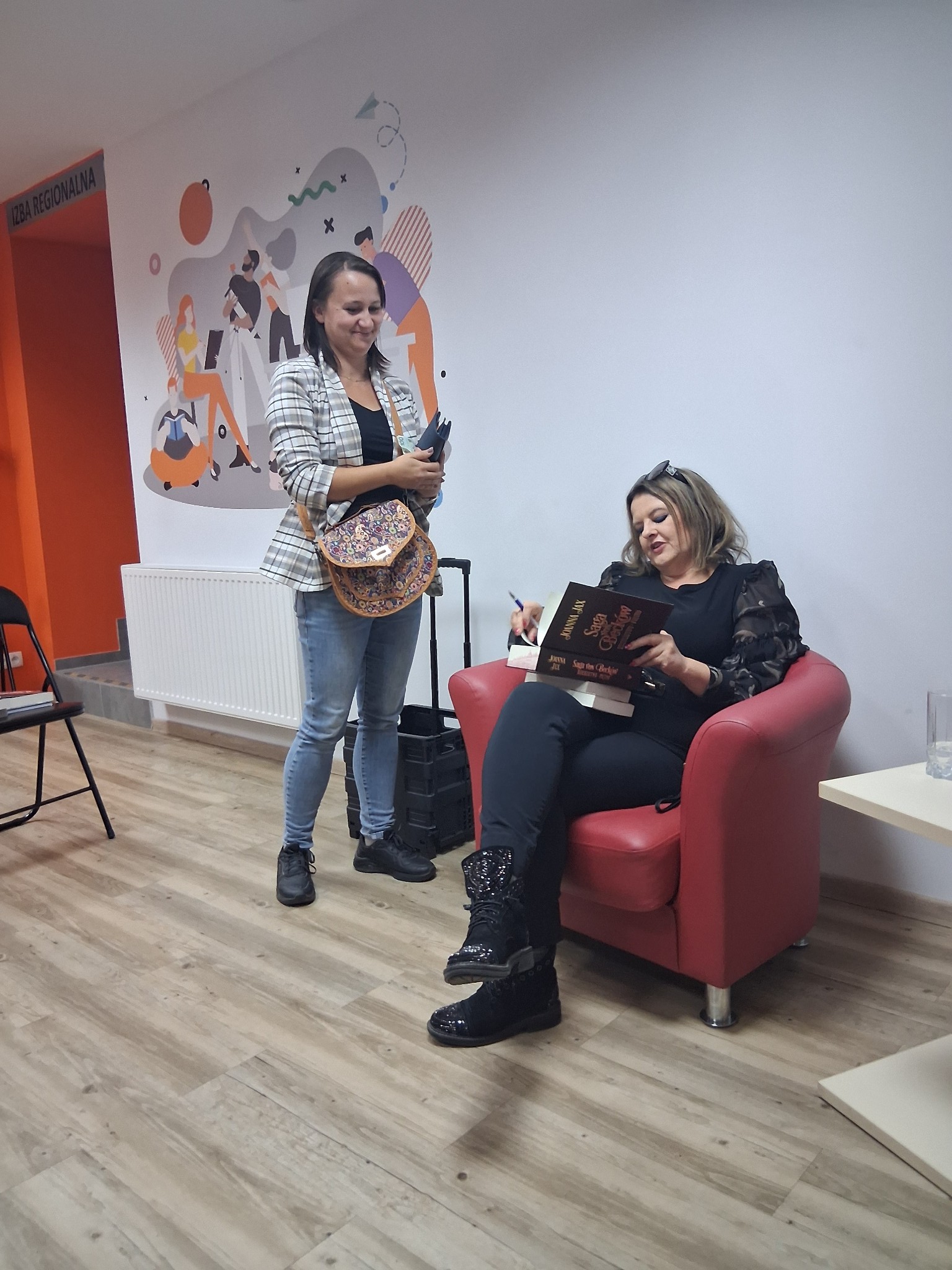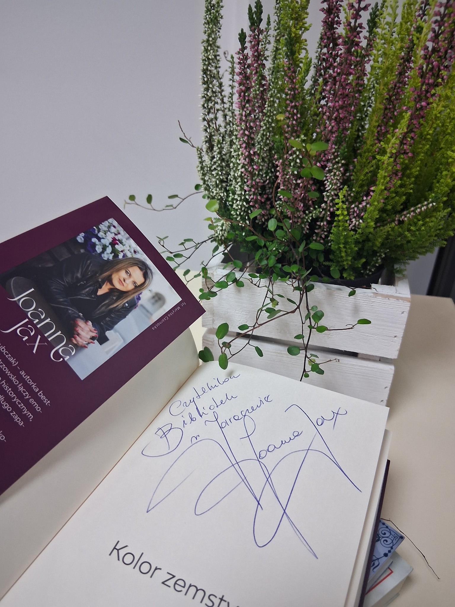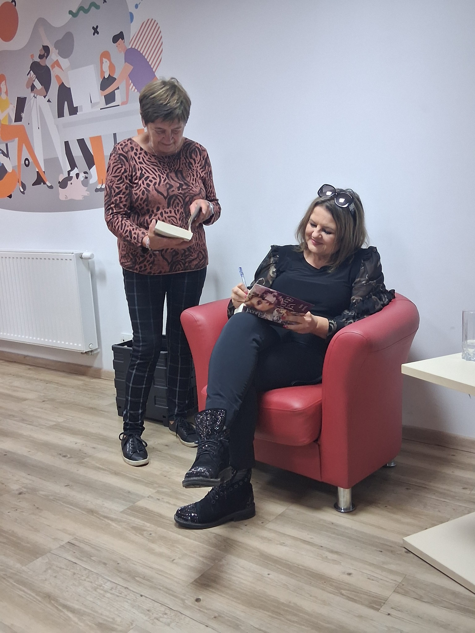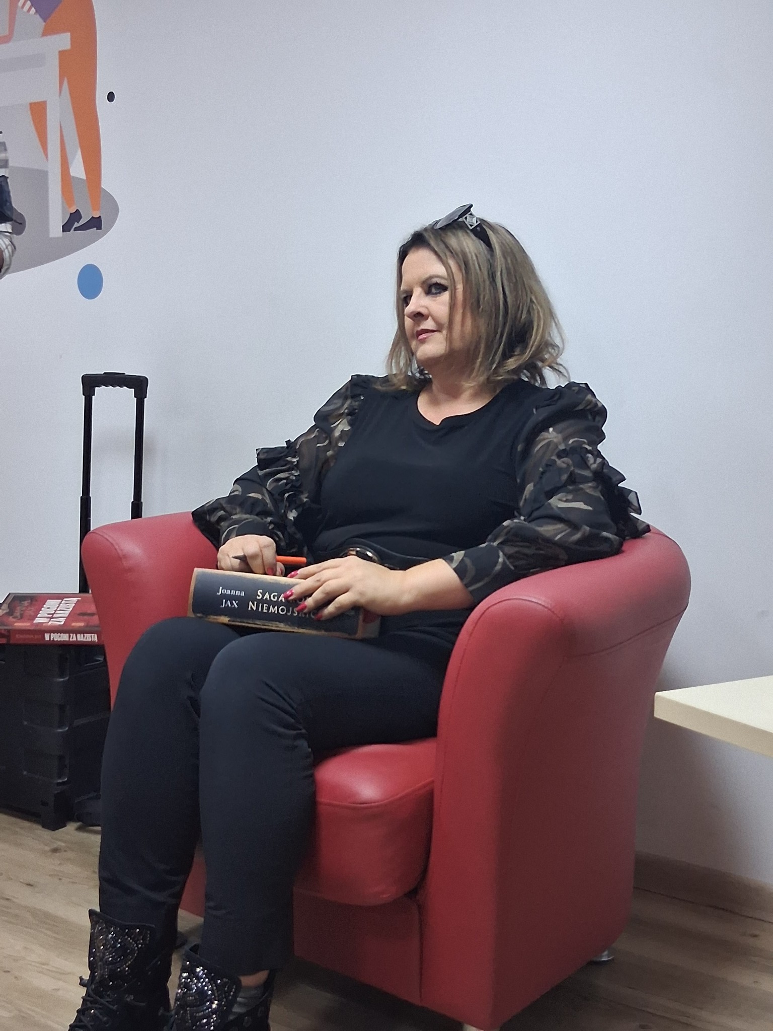 Joanna Jax, która na swoim koncie ma ponad milion sprzedanych książek. Uhonorowana Wawrzynem -Literacką Nagrodą Warmii i Mazur była gościem w naszej bibliotece.