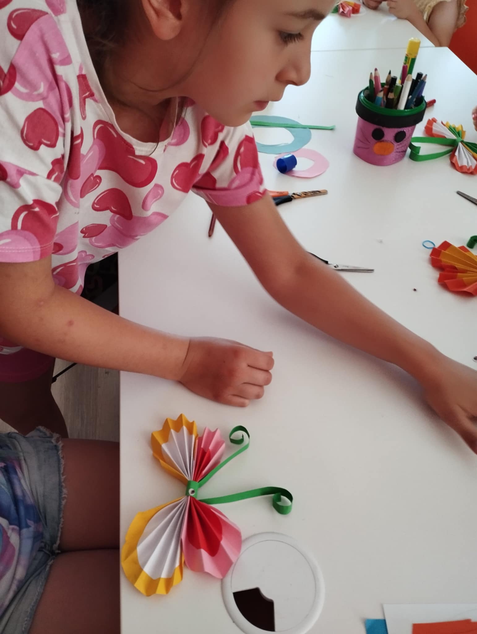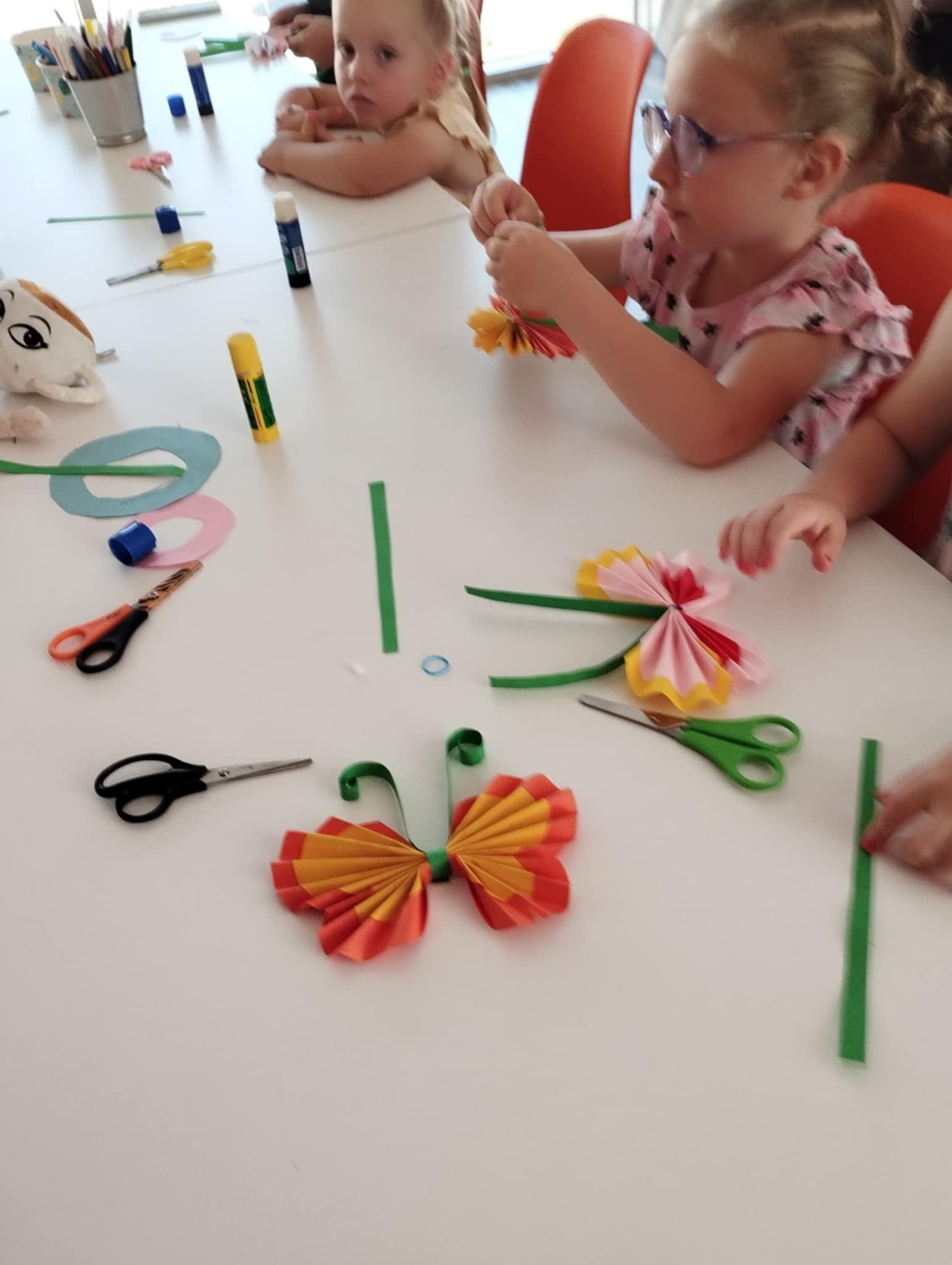 Podczas warsztatów manualnych prace skupione były wokół słonia. W prosty, lecz bardzo kreatywny sposób wykonaliśmy zwierzę. Podczas zajęć zainspirowaliśmy się książką z origami i wykonaliśmy piękne kolorowe motylki. Wakacyjne, manualne wtorki cieszą się dużą popularnością. Cieszymy się, że tak chętnie do nas przychodzicie.