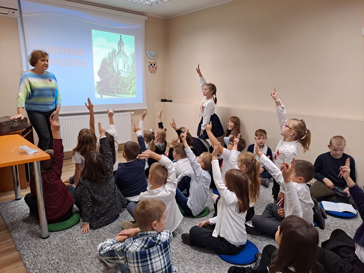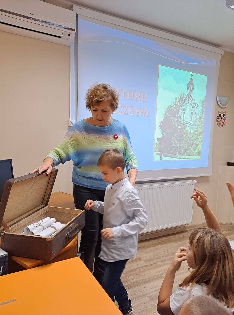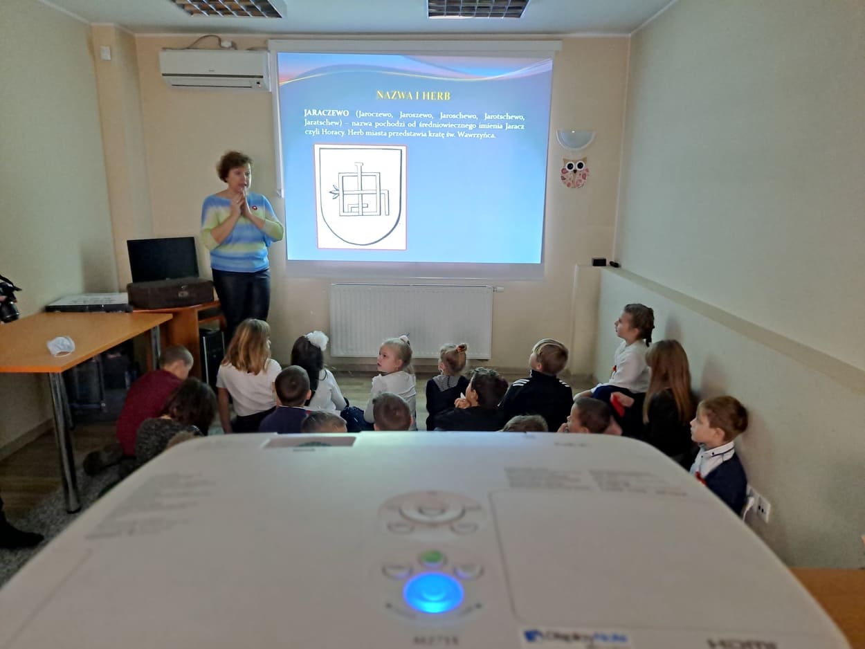 Młodzi mieszkańcy naszej gminy wysłuchali prezentacji o historii Jaraczewa, którą przedstawiła Pani Dyrektor.