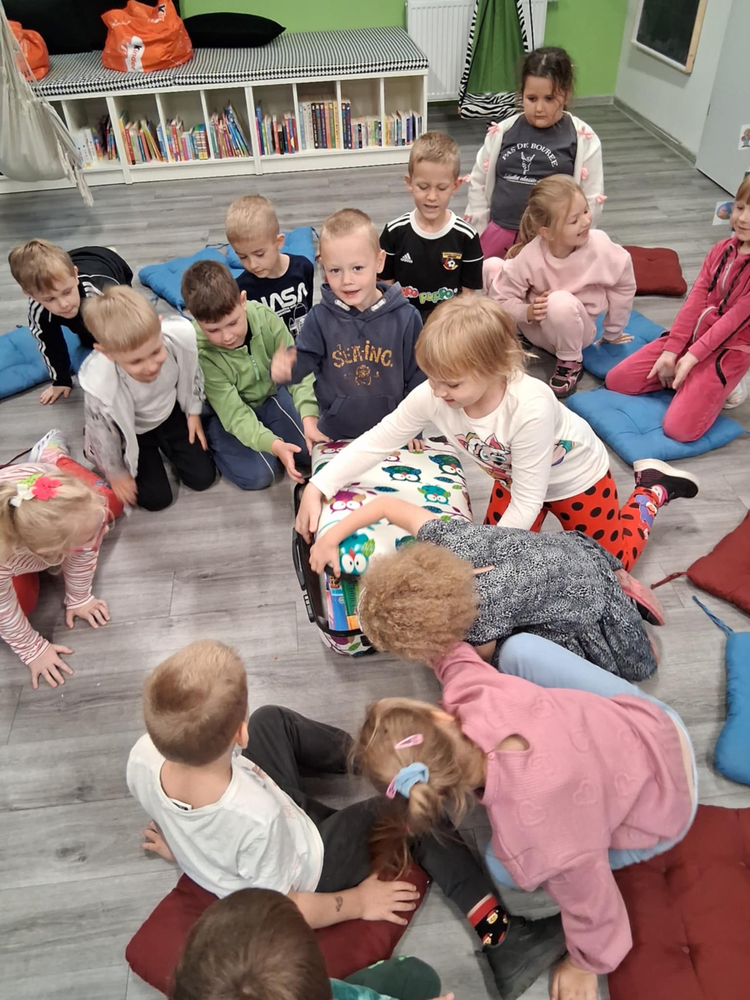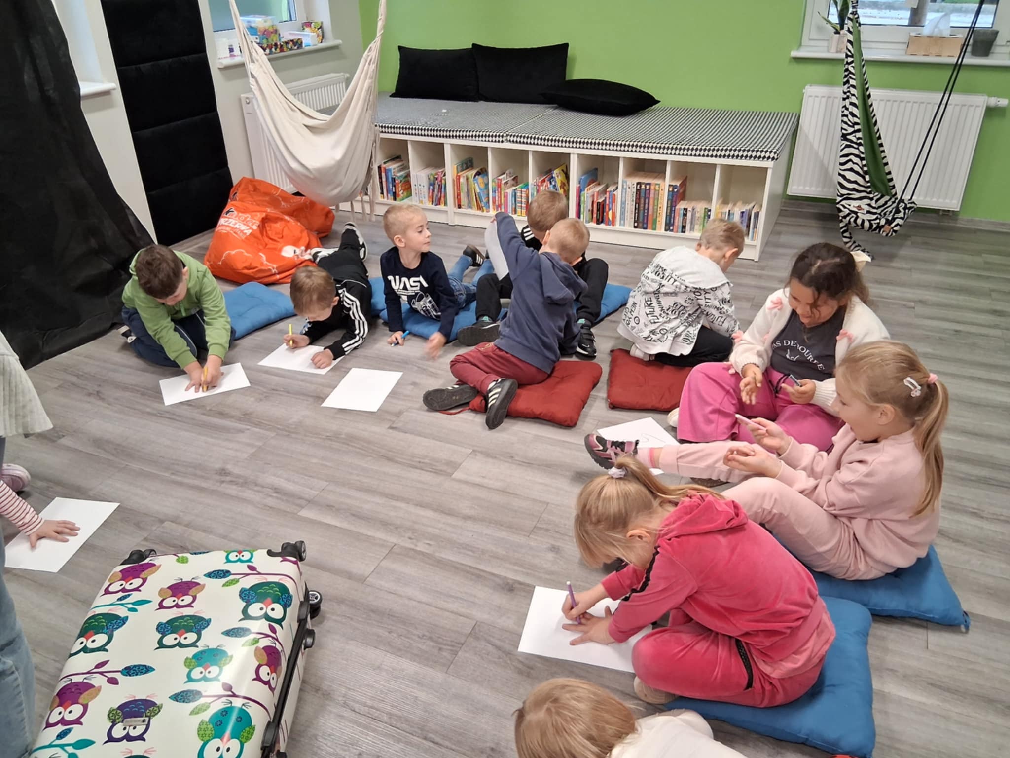 Zwieńczeniem zajęć było wypożyczanie książek, które ukryte zostały w czytelniczej walizce.