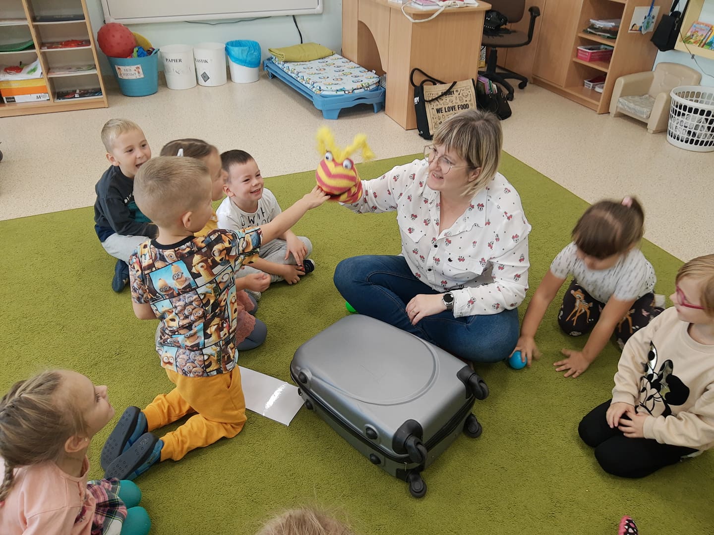 Dziś mieszkający w bibliotece MOLIKA odwiedził i poznał dzieci z Przedszkola Niezapominajka w Jaraczewie. Obdarował każde dziecko książką i wyjątkowym biletem do biblioteki. Kolejny raz ruszamy z akcją KSIĄŻKA W PODRÓŻY, której celem jest propagowanie czytelnictwa wśród przedszkolaków. Drodzy rodzice dzięki tak banalnemu zabiegowi jakim jest czytanie dzieciom dajecie im poczucie bezpieczeństwa i bliskości, co jest bardzo ważne do ich dalszego rozwoju.