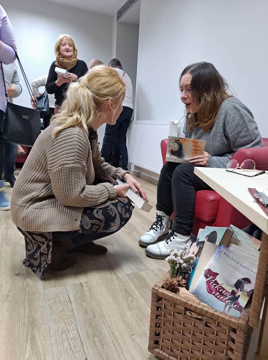 Emocje zapisane w książkach tak jednym zdaniem można podsumować dorobek literacki Pani WIoletty Sawckiej, która wczorajszego wieczoru gościła w bibliotece. Oprócz wątku miłosnego w książkach autorki pojawia się także historia. Wielowątkowość 11 książek napisanych przez Panią Wiolette sprawia, że czytelnicy często po nie sięgają.