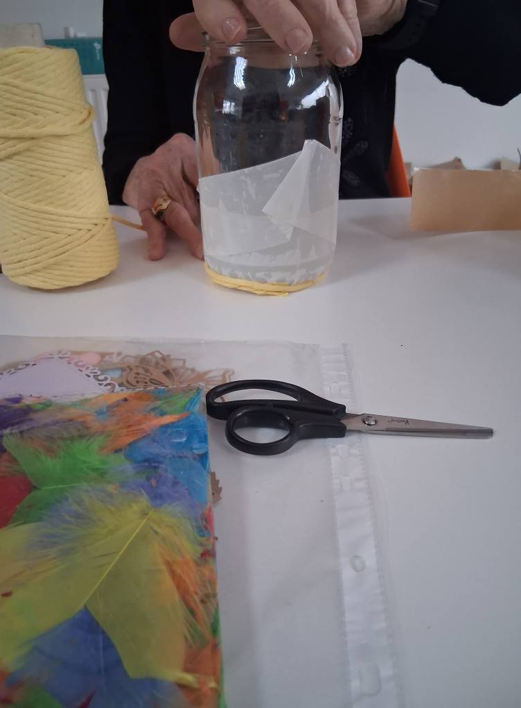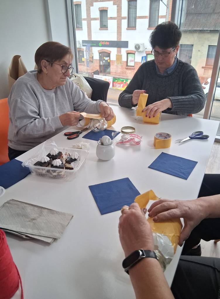 Pod okiem bibliotekarki Eweliny odbyły się kreatywne warsztaty rękodzielnicze dla seniorów, podczas których każdy uczestnik mógł samodzielnie wykonać niepowtarzalny lampion ze słoika oraz sznurka do makramy.